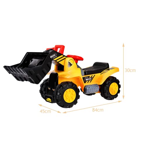 GYMAX Ruspa Cavalcabile Giocattolo per Bambini più di 3 Anni, Escavatore con Spazio di Archiviazione sotto La Sedia, Giallo, 85x45x30 cm
