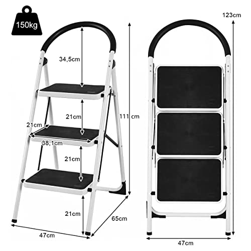 GYMAX Scaletta Pieghevole a 3 Gradini, Scala Salvaspazio in Metallo, Pedale Antiscivolo e Maniglia Rivestita, Scale da Lavoro, Design Richiudibile, Multiuso e Pratico, Portata di 150 kg, 47x65x111 cm