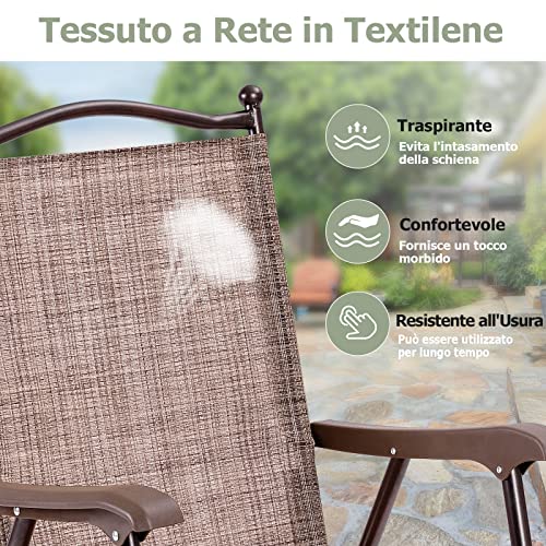 GYMAX Set di 2 Sedie Pieghevoli da Giardino, Sedia da Campeggio Portatile con Struttura in Metallo, Comoda Sedia da Giardino per Cortile, Piscina, Spiaggia, Patio, 64 x 58 x 91 cm (MARRONE)