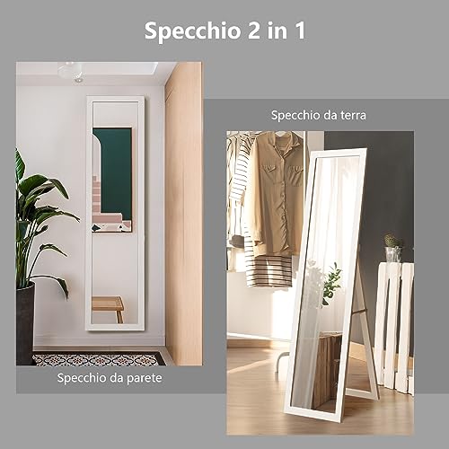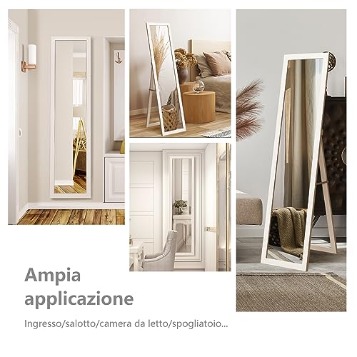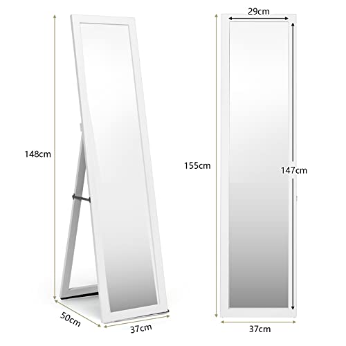 GYMAX Specchio da Terra, Specchio da Parete, Inclinazione Regolabile, con Cornice in Legno Rettangolare, per Camera da Letto, Specchiera Moderna, 37 x 50 x 148 cm (Bianco)
