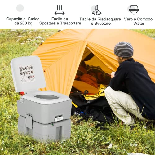 GYMAX Toilette Portatile all'Aperto per Emergenza di 20L, WC Portatile da Viaggio e Campeggio, Designo per Risparmiare Acqua, Capacità di Carico di 200 kg, Adatto per Donna Incinta Anziana