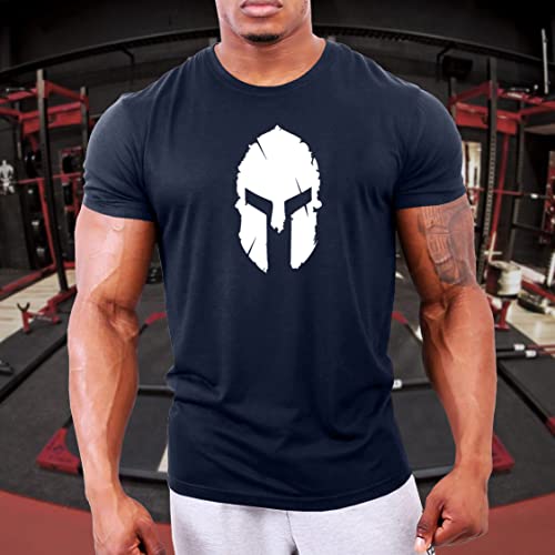 Gymtier - Maglietta da uomo per bodybuilding, stampa con elmo spartano, per l'allenamento in palestra Marina Militare L
