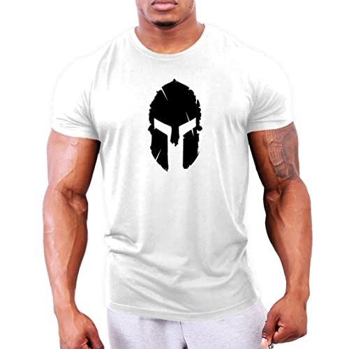 Gymtier - Maglietta da uomo per bodybuilding, stampa con elmo spartano, per l'allenamento in palestra bianco XXL