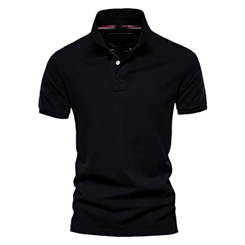 GYSAFJ Polo da uomo in cotone tinta unita classica polo uomo manica corta casual business sociale polo, Nero, 3XL