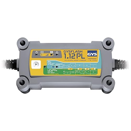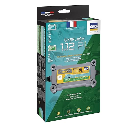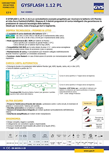GYS - GYSFLASH 1.12, Caricabatterie/Mantenimento di Carica per Le Batterie, 12V, 1A, Piombo e Litio, Caricatore Intelligente, mantenitore, Moto, Auto, Moto d'Acqua, Showroom - 026902