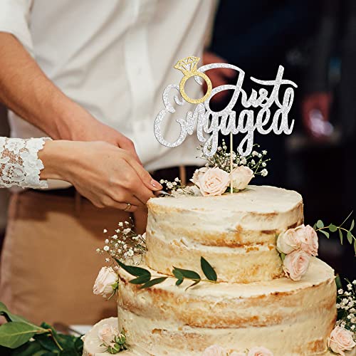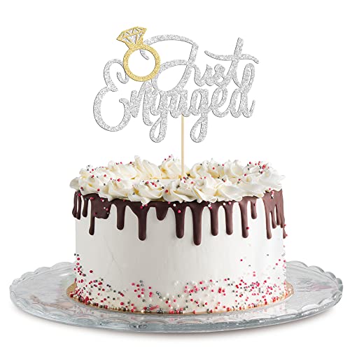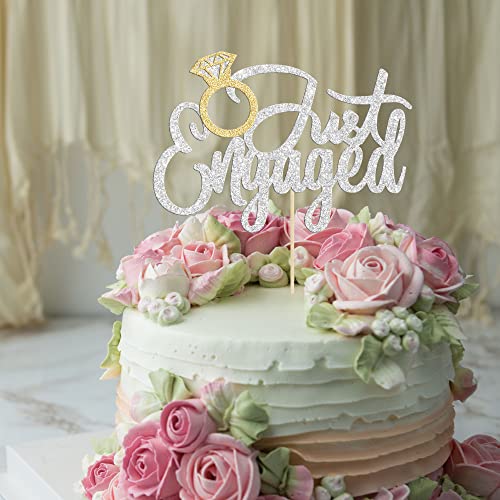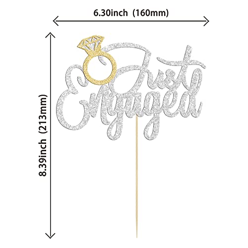 Gyufise 1 confezione Just Engaged Cake Topper Glitter We're Engaged Cake Pick Fidanzamento Decorazioni per feste di fidanzamento nuziali, decorazione per cupcake, forniture per feste, argento
