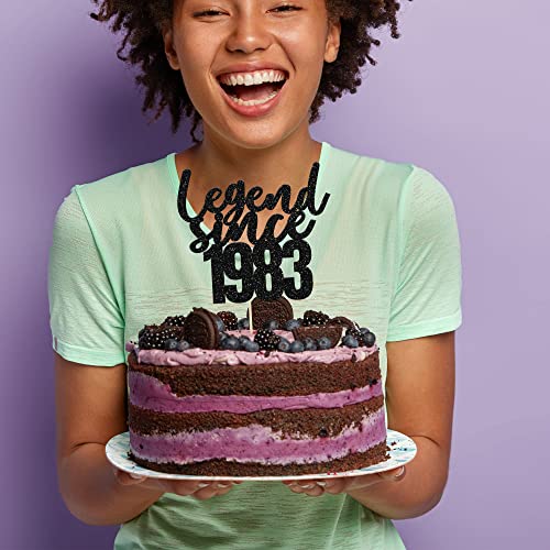 Gyufise 1 confezione da 1 topper per torta Legend Since 1982 nero glitterato uomo donna 40° compleanno decorazione torta per saluti a 40 anni 40° compleanno matrimonio anniversario forniture per feste