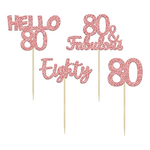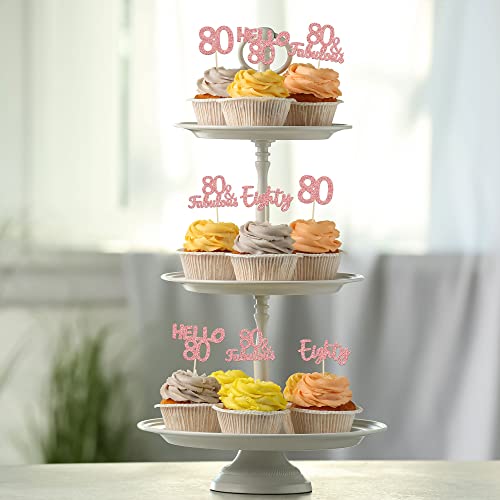 Gyufise 24 x cupcake 80° compleanno in oro rosa 80 e favolosi plettri per cupcake Happy 80° 80° compleanno per 80° compleanno, anniversario di matrimonio forniture per feste