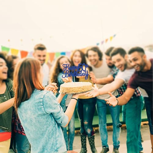Gyufise 3 pezzi Happy 50th Birthday Cake Topper Blue Glitter 50th Birthday Cake Pick saluti a 50 anni Cinquanta e favolose decorazioni per torte per 50th Birthday Wedding Anniversary Party Supplies