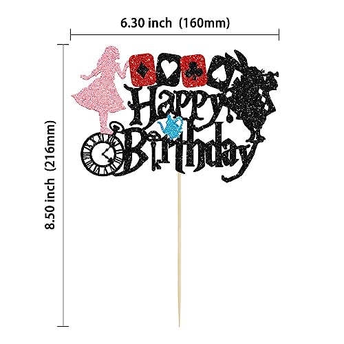 Gyufise - Topper per torta di compleanno con glitter, per bambini o audlts, coniglietto con coniglietto, ragazze Alice nel Paese delle Meraviglie a tema festa di compleanno, festa di Pasqua, festa