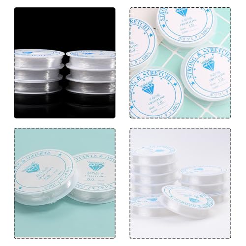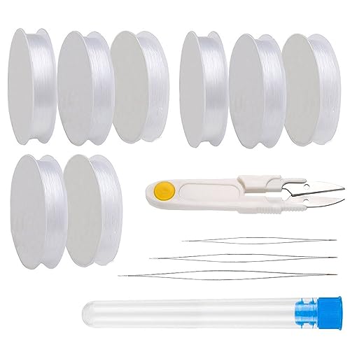GYWHOOFT 8 bobine di elastici per bracciali, trasparenti per gioielli, con ago per perline, bottiglia e forbici, per la creazione di gioielli, collane, fai da te (4 misure)