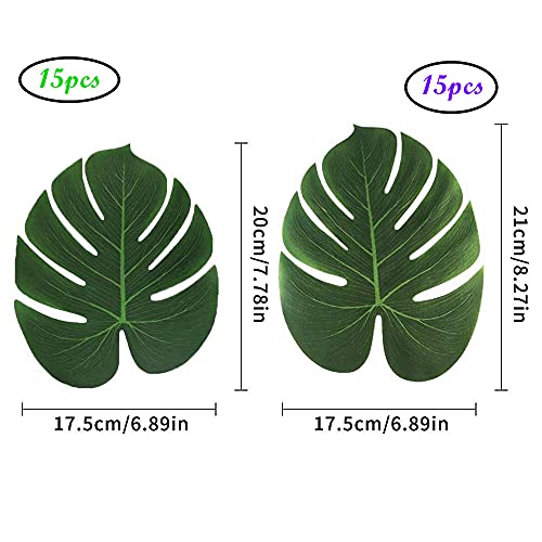 GZGXKJ 30 Pezzi 2 Tipi di Tropicale Piante Simulazione Artificiali Foglie di Monstera Foglie di Palma Tovagliette per Hawaiian Jungle Beach Barbecue Partito