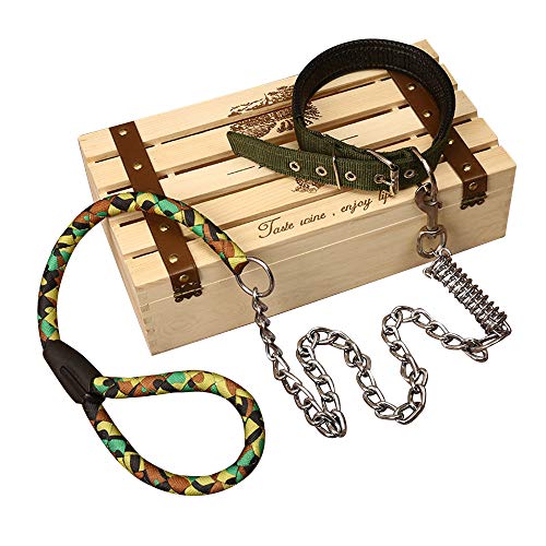 ★ Guinzaglio a catena per cani, resistente e anti-masticazione in metallo con manico in nylon imbottito, con collare per cani incluso.