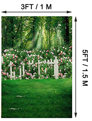 GzHQ 3x5FT Vinile Fotografia Sfondo Boschetto Scenario per Bambini Bambini Bambini A Tema Verde Alberi Fiori Recinzione Prateria Pascolo Foresta All'aperto Ripresa Sfondo 1x1.5 m Studio Puntelli