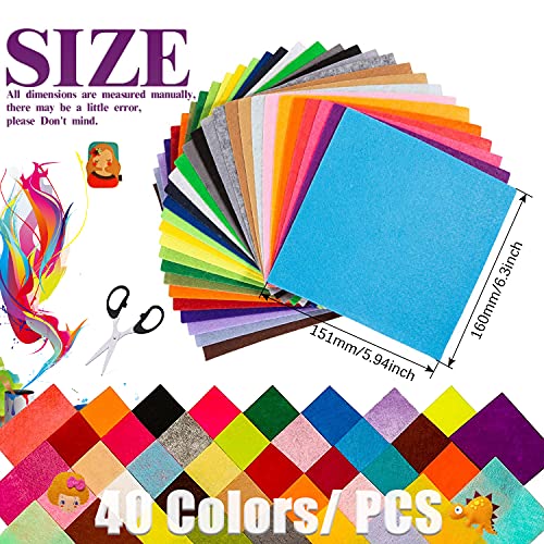 GZjiyu 40 Pezzi Feltro Colorato, Poliestere Pannolenci Colorati con Forbici per DIY Patchwork Creativi Cucire Mestieri Natale Decorazioni (16 x 15,1cm)