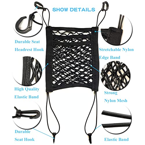 Elasticità ad alta intensità: la borsa a rete per auto è realizzata in tessuto Oxford di alta qualità ed elastico e rete di alta qualità, può essere allungata liberamente, ha una super forza di trazione che mantiene le cose in posizione e non si appesantisce.