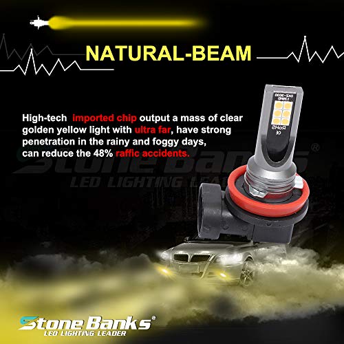 GZLMMY - Fendinebbia a LED per auto, 3000 K, 12 SMD 3030, chip con proiettore, super luminoso fendinebbia DRL 2000 lumen (H8 H9 H11)