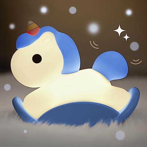 GZOKMOG Luce Notturna Bambini, Unicorno Giocattolo Regalo, Funzione Timer Lampada Bambini, 3 livelli di luminosità USB Ricaricabile LED Silicone Luci Notturna per Bambini Cameretta Bambina(Blu)