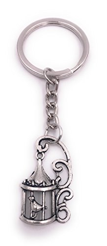 H-Customs Ciondolo Budgerigar in Gabbia Ciondolo Portachiavi in ??Metallo Argentato
