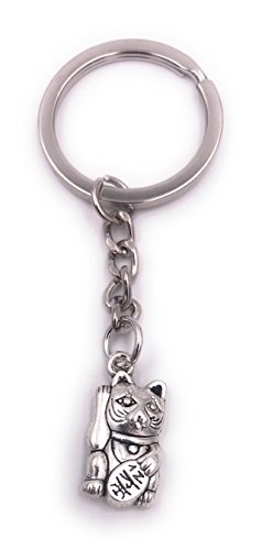 H-Customs Portachiavi Piccolo Winkekatze Maneki Neko in Metallo Argentato