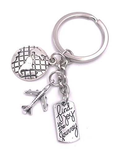 H-Customs Travel Journey Globe Portachiavi Ciondolo in Metallo Argentato