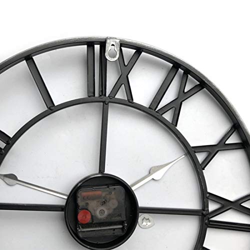 H0_V - Orologio da parete con numeri romani in metallo, stile retrò, 60 cm, colore: Argento