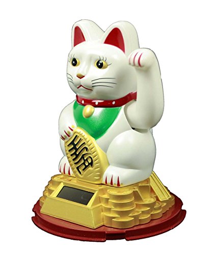 HAAC Solar Gatto che Saluta Gatto Fortunato gatto Portafortuna 16 cm colore bianco/rosso