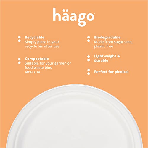 HAAGO 60 Piatti Ecologici per Dessert in Carta di Canna da Zucchero - 18cm