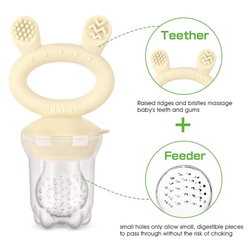 Haakaa Bambino Frutta Cibo Mangiatoia & Mini vassoio per spuntini congelatore, Mangiatoia in silicone senza BPA per un'autoalimentazione sicura del bambino, 4 mesi e più avena