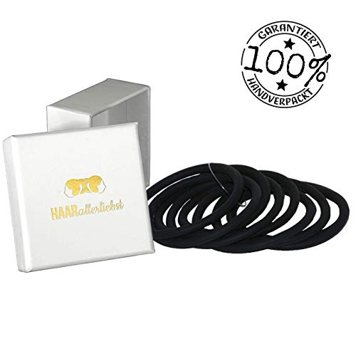 HAARallerliebst, 9 elastici per capelli, in silicone, colore nero, niente più grovigli, privi di parti in metallo, per sport, in scatola di colore bianco