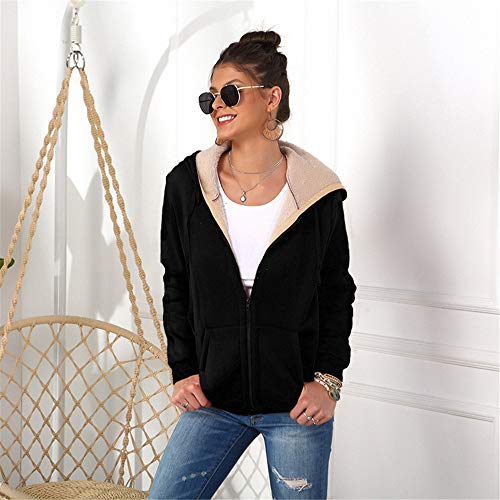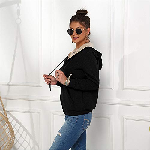 Haashpylien Felpa Donna con Zip e Cappuccio in Pile, Giacca Felpa Donna a Manica Lunga, Tinta Unita Casual, Felpe con Cappuccio da Donna con Tasche