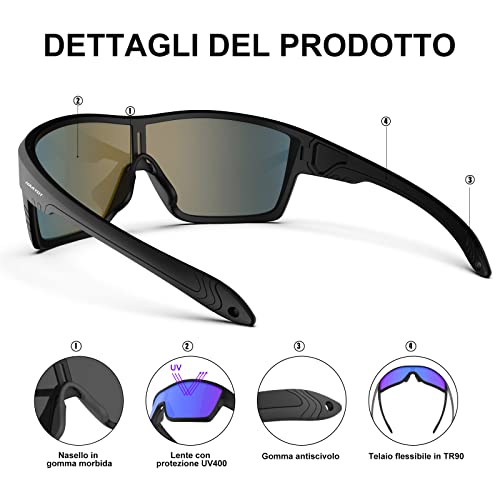VISIONE POLARIZZATA AD ALTA DEFINIZIONE: le nostre lenti polarizzate riducono efficacemente l'abbagliamento e forniscono una visione cristallina, dandovi la sicurezza di guidare in condizioni di forte luce solare. Ottimi per andare in bicicletta, correre, guidare, fare escursioni, pescare, ecc.