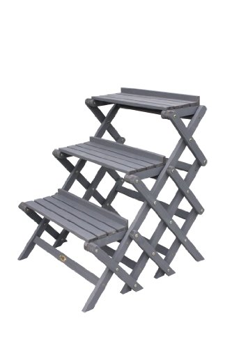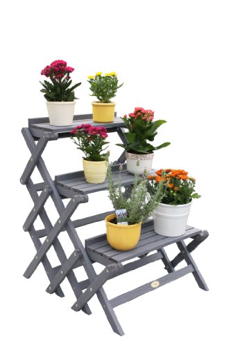 Fioriera a scaletta con 3 ripiani per vasi, colore grigio