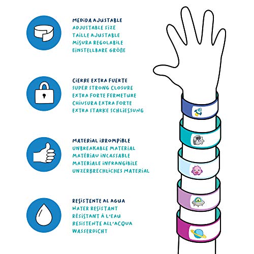 Haberdashery Online Braccialetti Identificativi per Bambini, Impermeabili, Personalizzabili, Resistenti, 5 Unità - Ideali per Parchi, Piscine, Feste, Escursioni - Galassia, 19x255 mm
