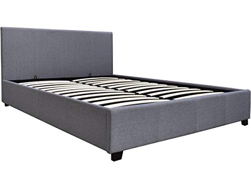 Letto matrimoniale "Carla" - Dimensioni letto: 202 x 147 x 86,5 cm - Dimensioni materasso: 140 x 190 cm - 2 posti - Struttura in legno, Finitura: poliestere - Scatola portaoggetti in tela - Grigio - Rete letto inclusa