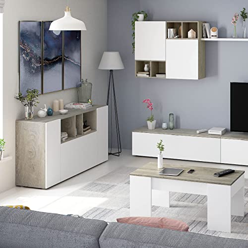 Habitdesign Loira Credenza, Legno ingegnerizzato, Quercia Alaska E Bianco Artik, Unico