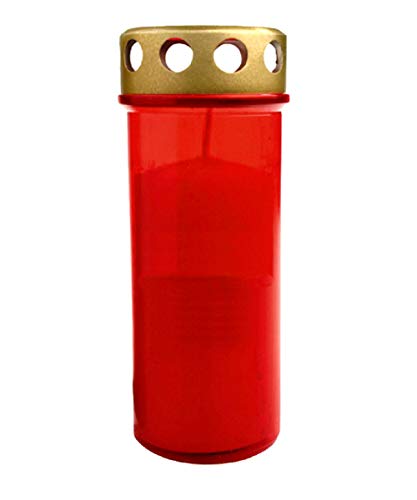 HAC24 - Set di 10 lumini XL per cimitero, con coperchio, colore: rosso