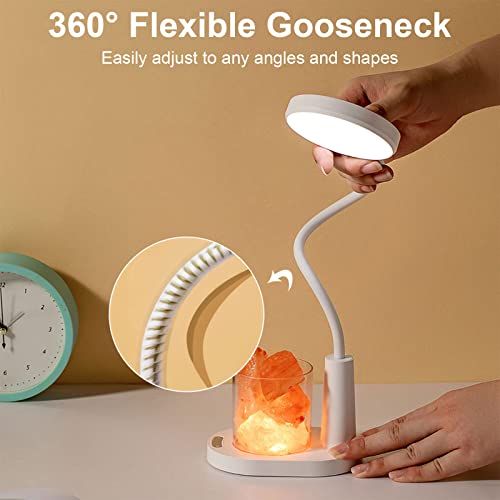 Hacevida Lampada da Scrivania LED, Flexo Lampada da Tavolo Batteria Ricaricabile 2000mAh con Sale Dell'Himalaya e Supporto per Matite, Cambio Colore Automatico, 3 Livelli di Luminosità
