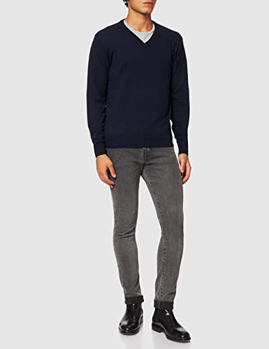 Hackett London Uomo Wool Silk Cash V Neck Felpa, Blu (Midnight 582), L