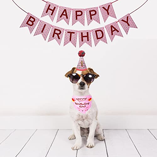 HACRAHO - Set di bandana per il compleanno del cane, 4 pezzi, con cappello a cono e scritta "Happy Birthday", con decorazione per torta a forma di cane, rosa