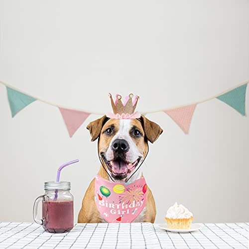 HACRAHO Set di bandana di compleanno per cani, sciarpa triangolare, per compleanno, per cani, per compleanno, per cani, con corona e cane, cappello di compleanno, per feste di compleanno, rosa