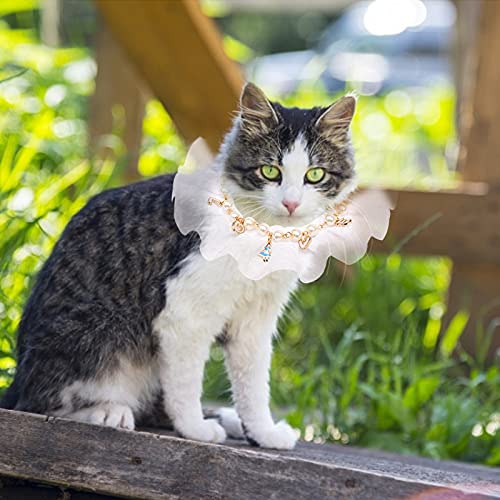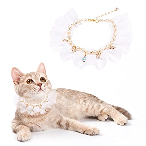 HACRAHO Collare per animali domestici con perle e perle, 1 confezione da 1 collare regolabile per cani e gatti, con ciondolo a forma di amore, con orlo in pizzo, per gatti, cani, taglia M