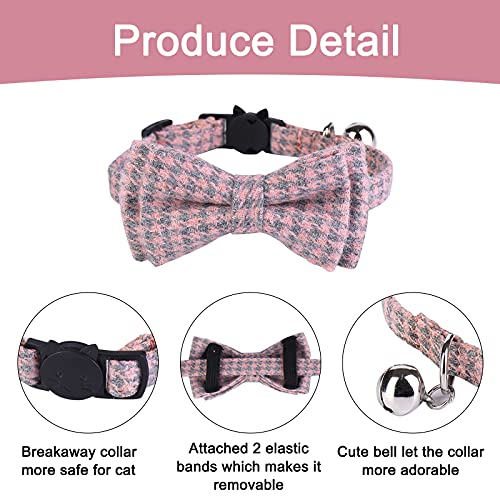 Design unico: il papillon ha attaccato un elastico rimovibile e sostituibile. Il collare per gatti con una campana in metallo consente di conoscere facilmente la posizione del gatto, rende i tuoi gatti accattivanti e più carini.
