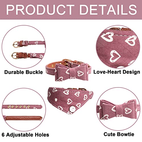 HACRAHO Set Collare e Guinzaglio per Cani, 3 PCS Love-Heart Pattern Pet Papillon Collare Bandana Collare e Guinzaglio Collare per Cani con Fibbia Regolabile, Roso