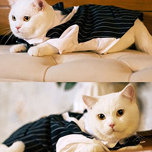 Lavorazione raffinata: questo smoking per cani è progettato con stile con tessuto classico a righe. Design smoking con fiocco e bottoni decorativi.