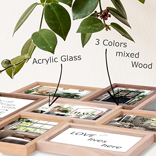 HAES DECO - Portafoto da Parete Multiplo/Cornici Foto Multiple Stockholm in Legno in 3 tonalità marroni Cornice Collage Foto per 8 foto 13x18 (dimensioni galleria fotografica 53 x 53 cm) - MP122