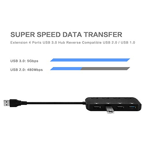 HaetFire Hub USB 3.0 4 Porte Sottile sdoppiatore USB, Hub Dati USB 3.0 con Singoli Interruttori di Alimentazione e LED per Macbook, Mac Pro/mini, iMac, Surface Pro, XPS, Notebook PC, PCs e Laptops
