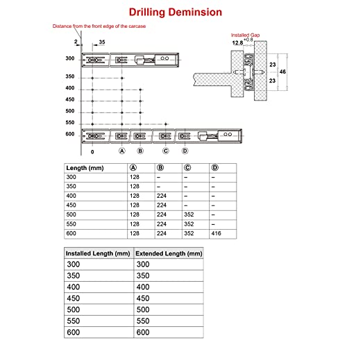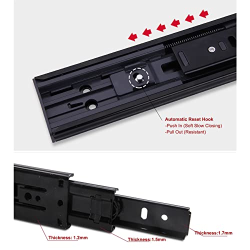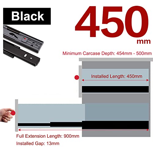 HAFELE Cuscinetti a Sfera Uscita Totale Acciaio Guide per Cassetti 450mm con Ammortizzatore Soft Closing Telescopiche Guida per Cassetto con Chiusura Automatica Armadio Portata 35kg Nero (1 Paio)