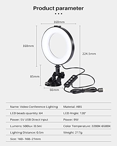 Luce più brillante e più morbida : Il kit di illuminazione per videoconferenza viene fornito con un diffusore bianco aggiuntivo che rende le luci molto morbide e non abbaglianti e proteggerà i tuoi occhi. Da 3200 K a 6500 K, 500 lux / 0,5 m. Piccolo ma luminoso. Vieni con diffusore morbido per proteggere i tuoi occhi