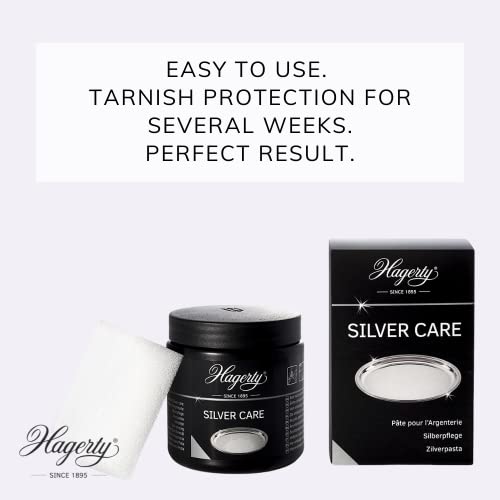 Hagerty Silver Care Crema per argento 185g I Efficace crema lucidante per pulizia & cura di argento & metallo argentato I Detergente per argento per argenteria ossidata, piatti, vassoi I Con spugna
